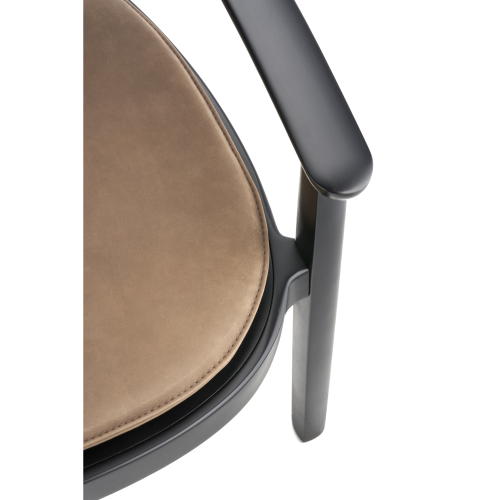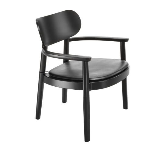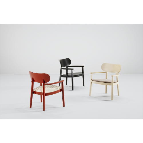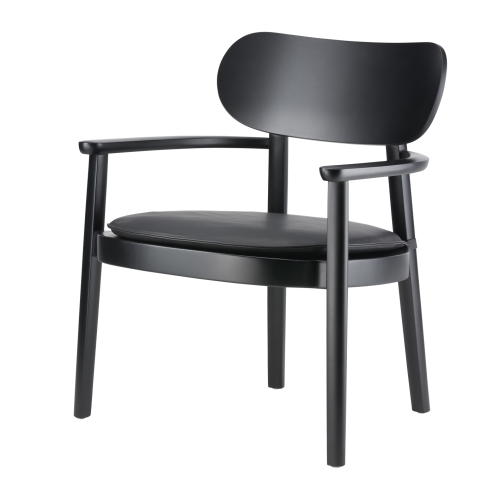 チェア118シリーズのラウンジチェア119MF。ゆるやかに傾斜した広い背もたれと、少し後方に傾斜した深い座面により、リラックスできる最適な座り心地を提供します。脚部断面は前面にゆるやかな曲線を描き、後面には伝統曲木と同じ丸みをおびた曲線を描く独特な馬蹄型をしています。アームは大きな角材を曲げ加工した後CNC加工で仕上げています。伝統と最新技術を融合させたラウンジチェアです。