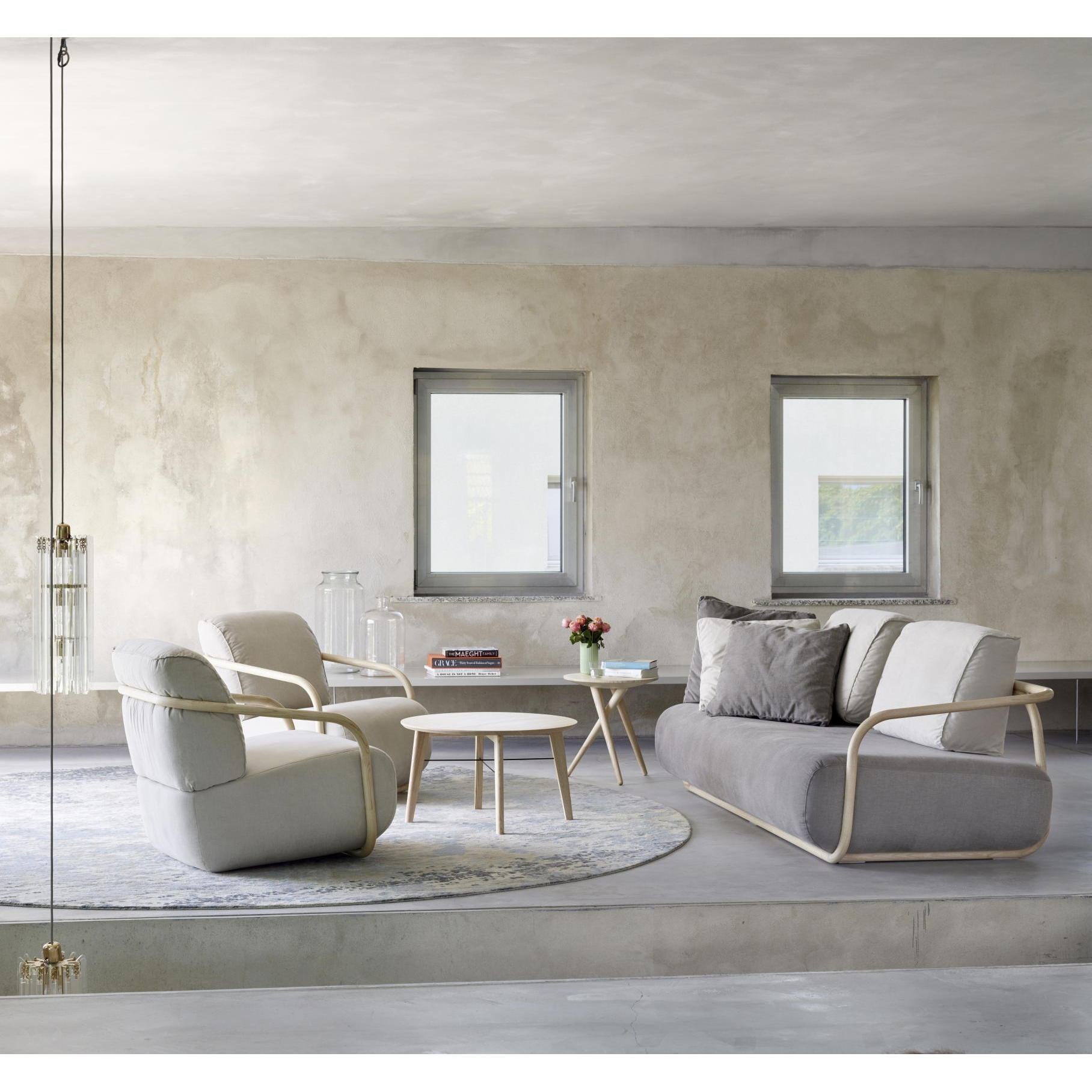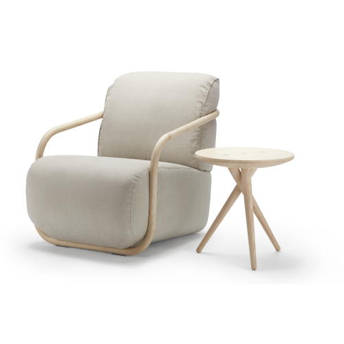 THONETならではの曲木を贅沢に使ったソファシリーズです。ボリューム感のあるシートクッションを、スケール感のある曲木が抱え込むように使われています。