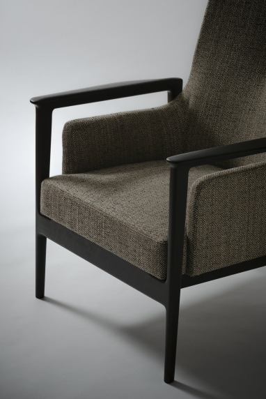 フレームと離れているアームとシートバックの流れるようなラインがウッドフレームと融合したミドルバックのスタイリングは上質な心地よさを創造しています。