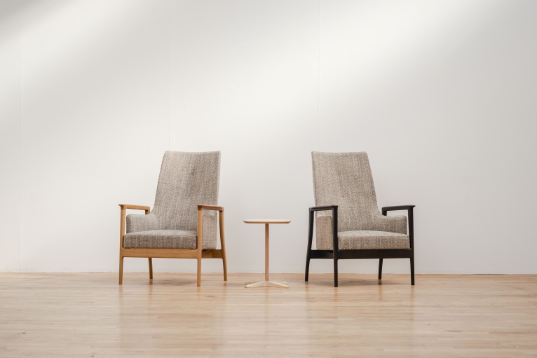 フレームと離れているアームとシートバックの流れるようなラインがウッドフレームと融合したミドルバックのスタイリングは上質な心地よさを創造しています。