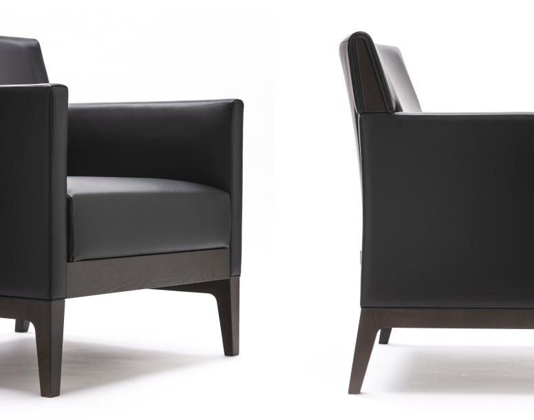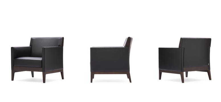 トラディショナルでスクエアな落ち着きのあるフォルムのラウンジチェア。バランスの取れた端正なプロポーションはコンパクトなサイズ以上の心地よさを与えてくれます。
