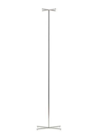 真っ直ぐに伸びた細いステンレスから四方に伸びるベースとヘッドの形状がエタンの分子構造式に似たシンプルなハンガースタンド。