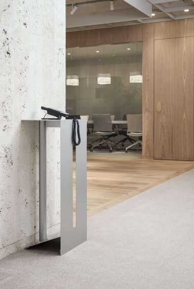 L字構成の薄いプレートで存在を感じさせないテレフォンスタンド。