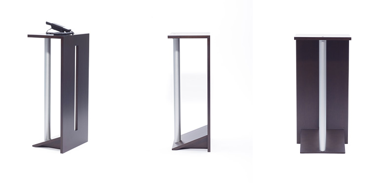 板面材を前面に配置したシンプルなデザインのテレフォンスタンド。