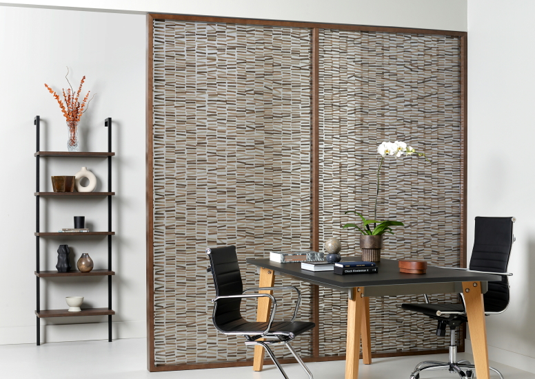 アフリカ セネガルの熟練したワイヤー職人によって編み上げられたパターンを挟み込んだデザインパネルです。