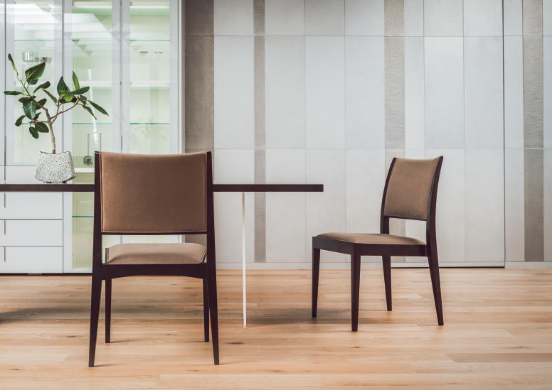 ロジカルでとてもシンプルな日本刀の刀身ような、のびやかな反りの後脚が、重ね合わせた時の連続性の美しさも引き出しています。