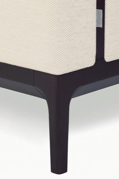 ウッドフレームの脚は内側にテーパーカットを施すデザインで角度により繊細な表情を覗かせます。