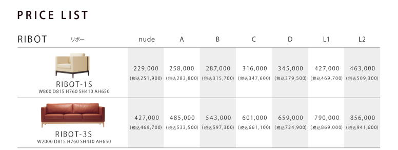 ■リボー (RIBOT) ソファのスペックはこちらから。