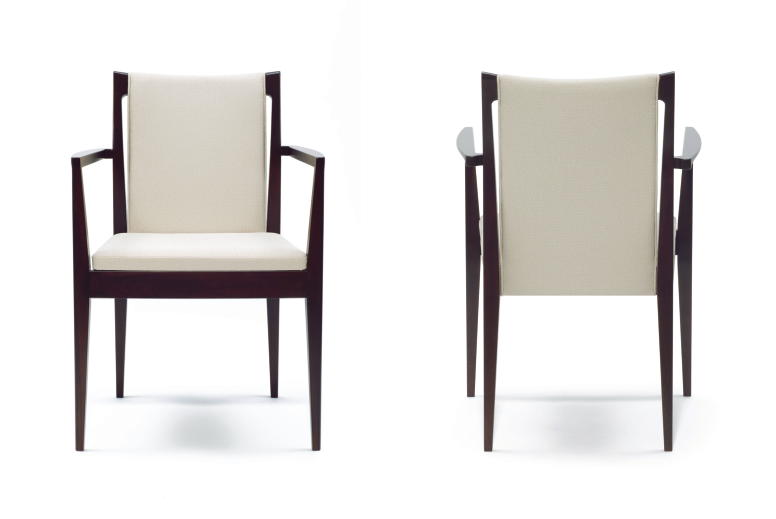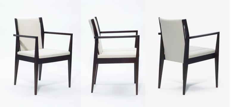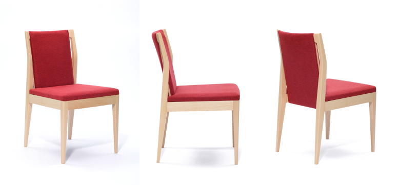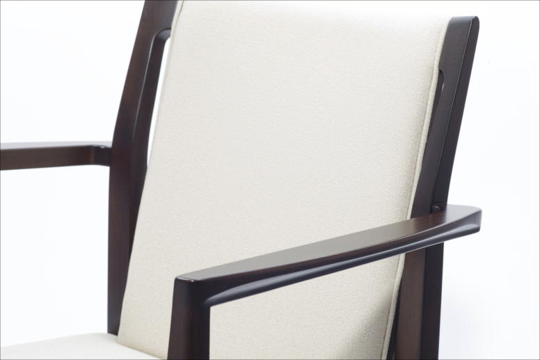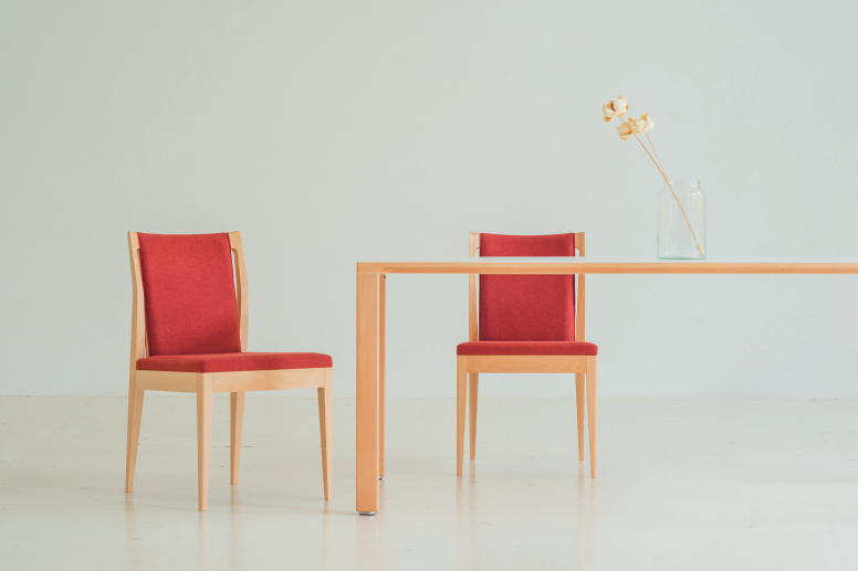 背のスリットがデザイン的な特徴となり、張込みのシートバックをスリムですっきりとした表情にしています。