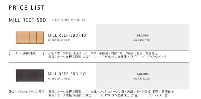 ■ミルリーフ SBD-PO (MILL REEF-SBD-PO) サイドボード(プッシュオープン扉)のスペックはこちらから。