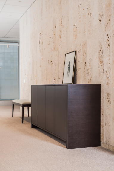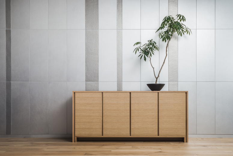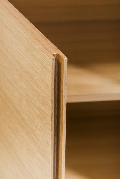 側板と扉の間のスリットがアクセントとなり、単調となりがちな面構成のフォルムがより立体的な表情を見せます。