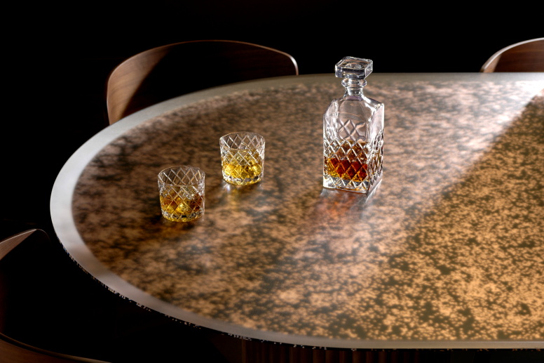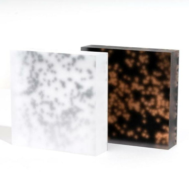 3form独自の表面仕上げを施した厚いアクリルの下で煌めくメタリックな輝きは今までにはない表現で、星空やイルミネーション、水面や雪・氷や大理石と言った様々なものを想起させます。