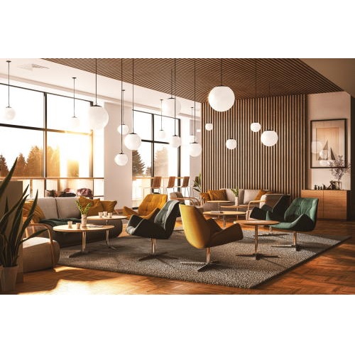 折り紙のような独特なフォルムをもつシェルは、包み込むような絶妙な掛け心地を提供します。808をコンパクトにしたラウンジチェアです。
