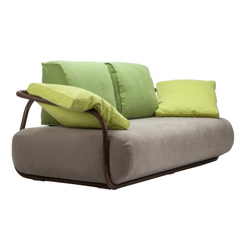 2002は、背とアームに大振なクッションを置いてソファとして、そのままにデイベッドやベンチとフレキシブルなソファです。