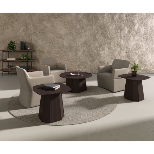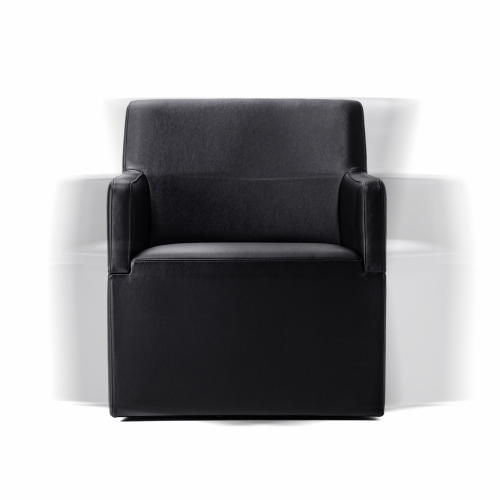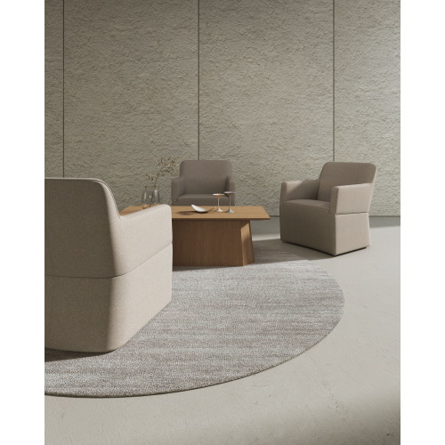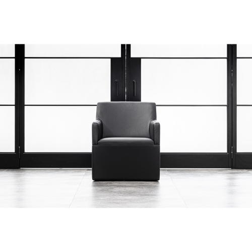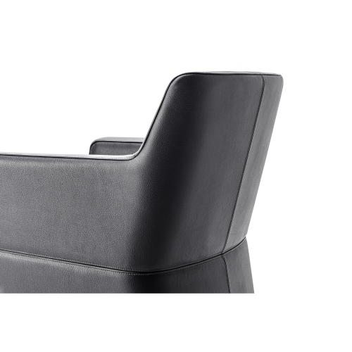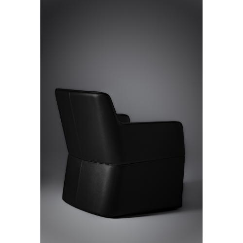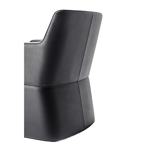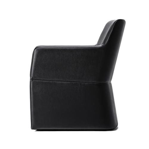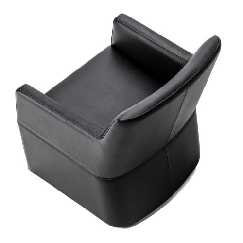 角が取れた円みのあるシェイプが流れるようなフォルムを引き立て視線を遮らず解放感を演出する回転式ラウンジチェア。