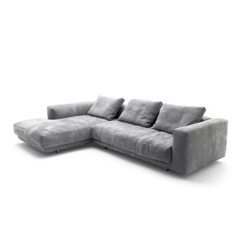 モスは上質な座り心地と安らぎを兼ね備えています。クッションは大きく柔らかい座り心地、そして宙に浮いているかのように繊細な金属製の脚部。
