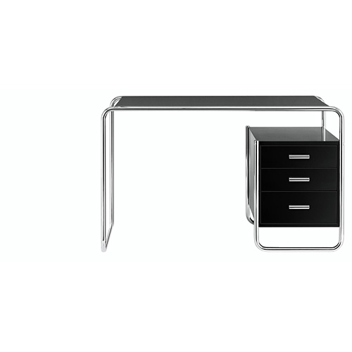 1本のスチールパイプが天板、引出、棚板を支えたシンプルなデザインは、バウハウスの理念に基づいた「芸術と技術の統一」を成功させている作品の一つです。