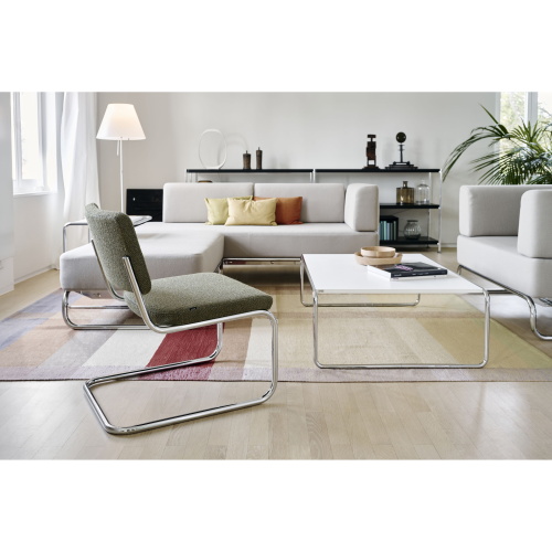 布張りのラウンジチェアよりも軽くてコンパクトなS32Lは、すっきりとした軽やかな印象をあたえます。どのような場所でもコミュニケーションの妨げにならず、リラックスできる空間を演出します。