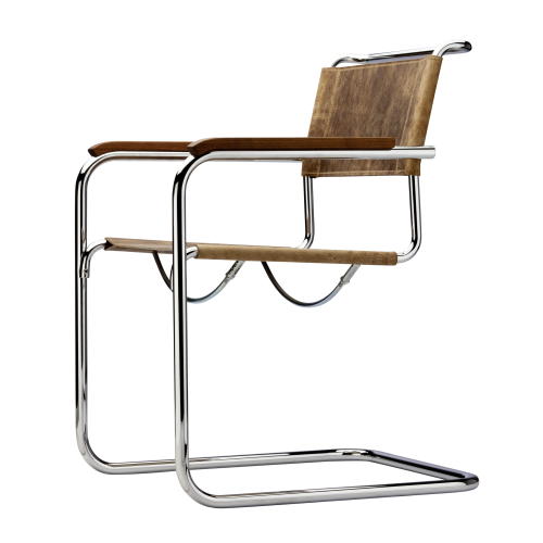 「雲の上の座り心地」と言われ座面の片側だけで座面を支えるカンティレバーチェア(片持ち式構造)。座面のシートは座った時の重みで沈み、身体にかかる圧の負荷は分散され、まるで空中に座っているかのような独特の浮遊感を感じます。