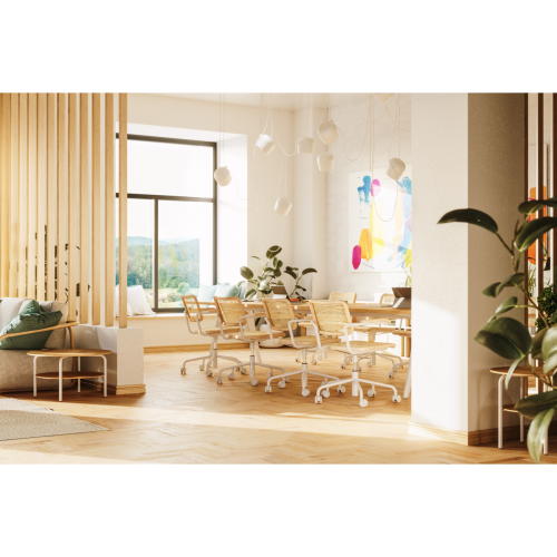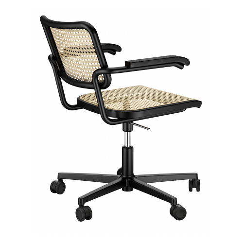 ウィーン伝統の曲木技術と籐編みを受け継いだ背もたれと座面をそのままに、機動性に優れたキャスターベースを組み合わせることで、軽快な操作性と快適な座り心地を両立しました。