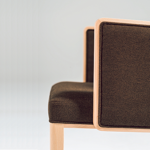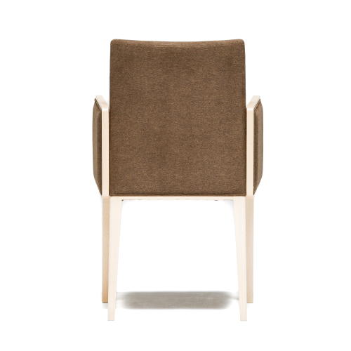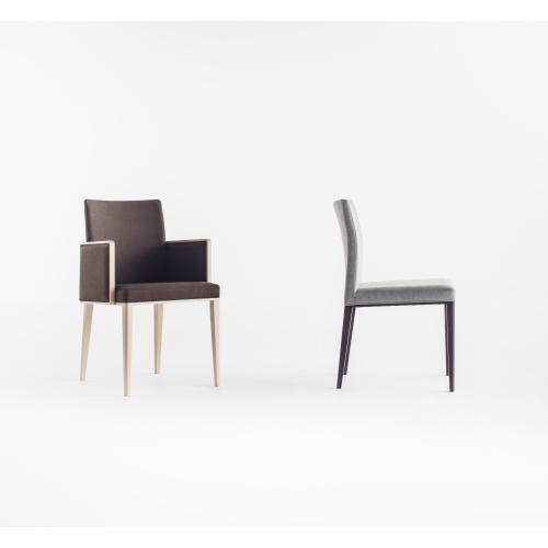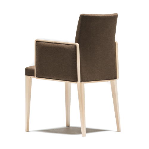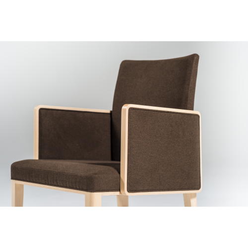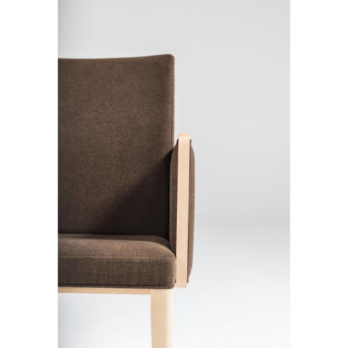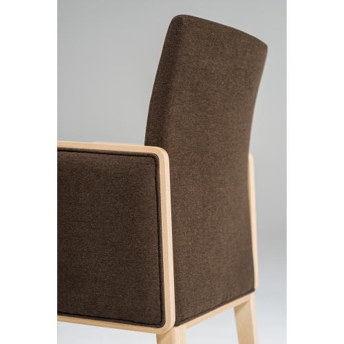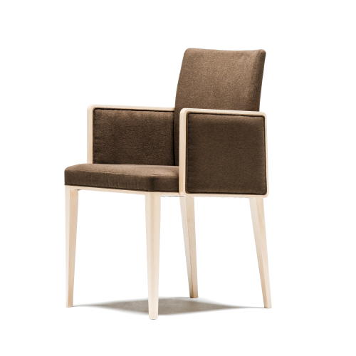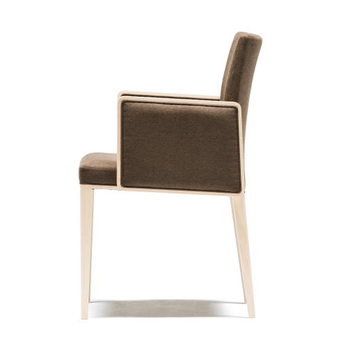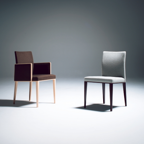 [ティフィン]シリーズのアームチェア。背張りのしなやかな曲線のアウトラインが軽快な印象を与え、ウッドの細いフレームと合わせたアームの輪郭が端正なフォルムのモダンテイストに仕上がっています。張地や塗装色のセレクトにより空間に合わせやすいアイテムとなります。