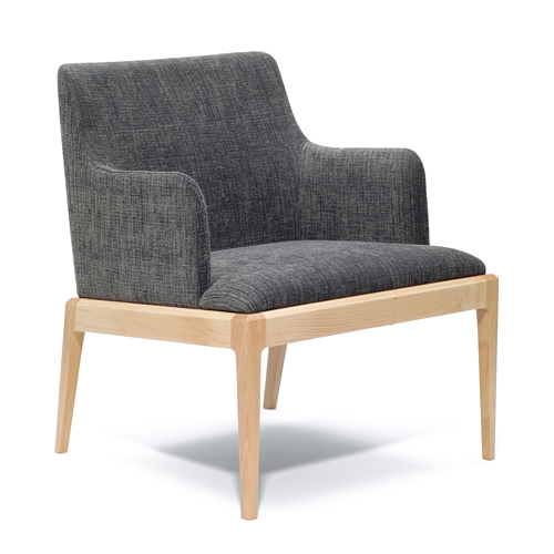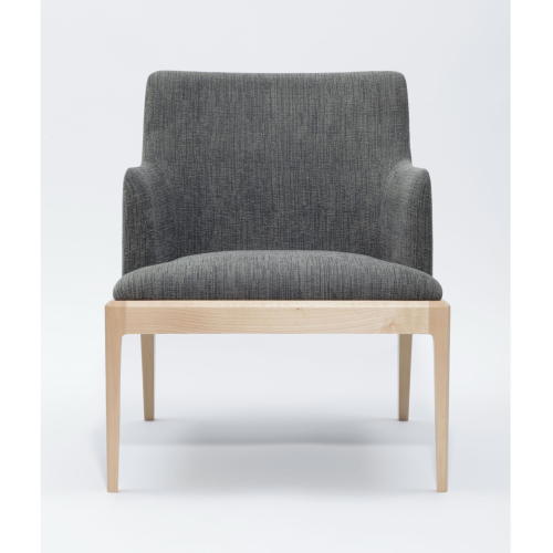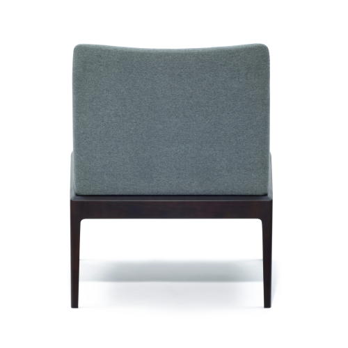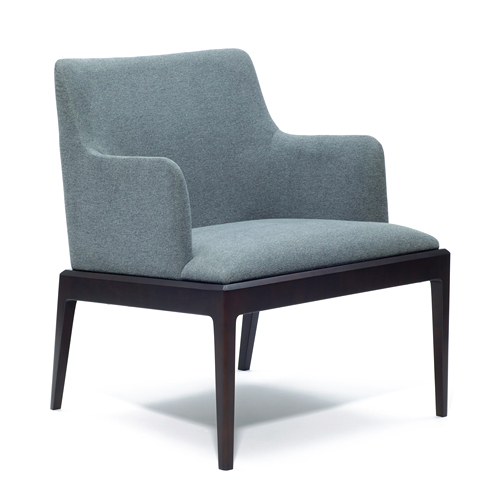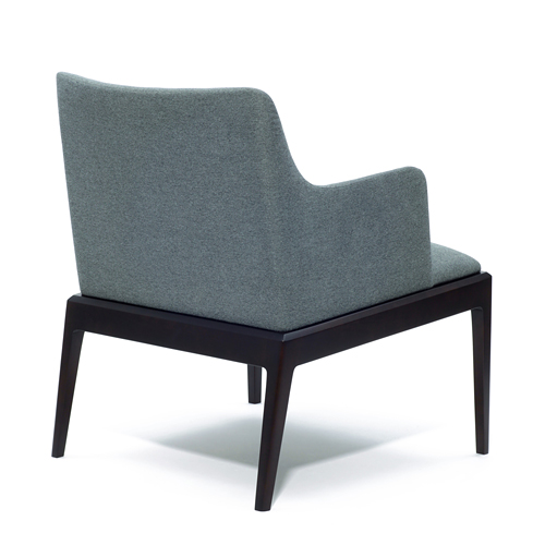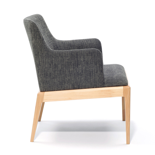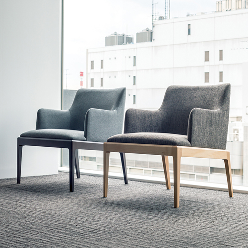 張地に包まれたシートとアームから連なるシートバックは穏やかなラインでソフトな掛け心地。